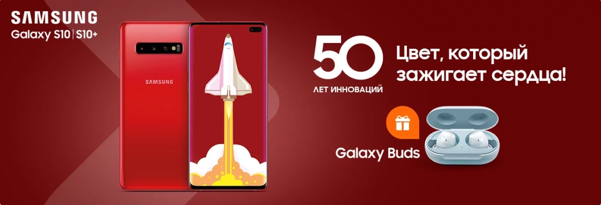 Рекордна продуктивність, топові камери і бездоганний дизайн. А тепер ще й соковитий колір Cardinal Red! Стань володарем яскравого флагмана прямо зараз, щоб відразу укомплектувати його не менше розкішним аудіо-гаджетом! Купи Samsung Galaxy S10 або S10 + і отримай бездротові навушники Galaxy Buds. Акція проходить в період з 13 травня по 30 червня 2019 року.